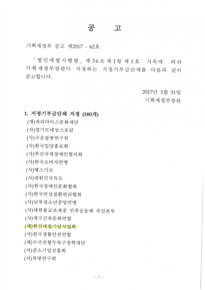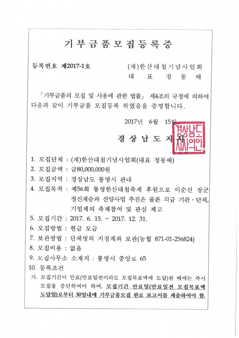 기부금품 모집등록증을 발급받고 위와 같이 공고하오니