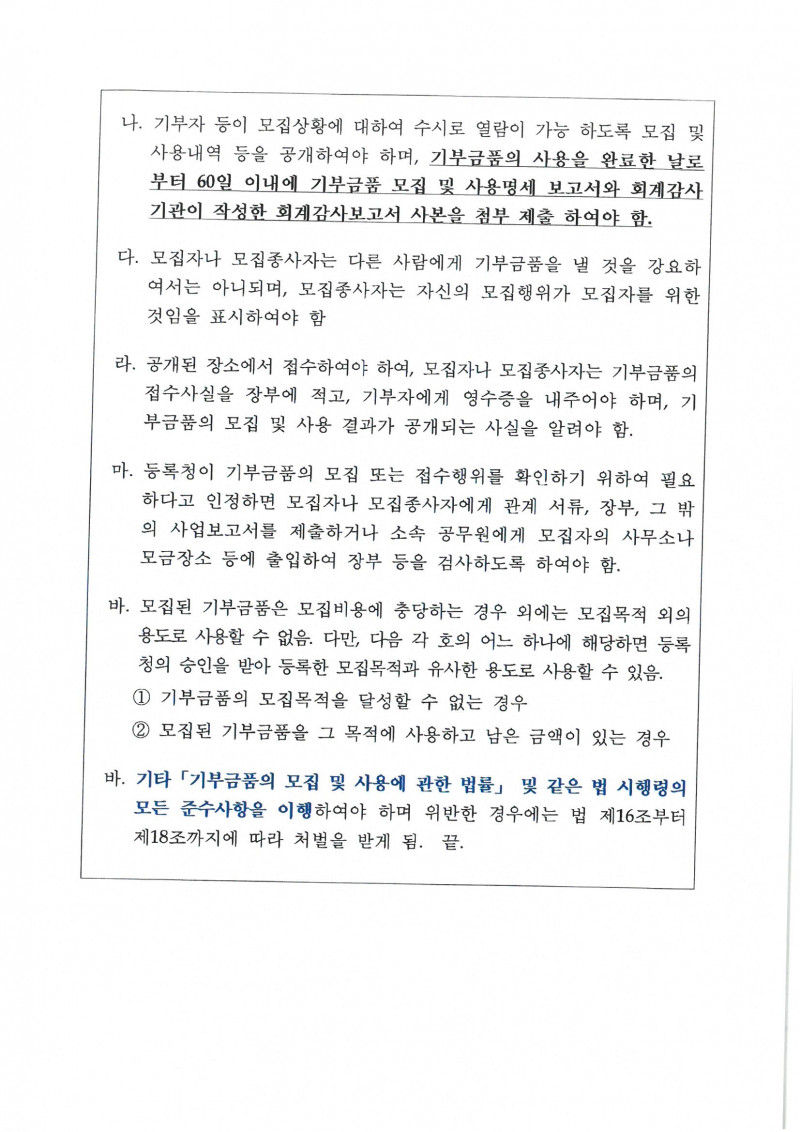 『기부금품의 모집 및 사용에 관한 법률』 제4조의 규정에 의하여